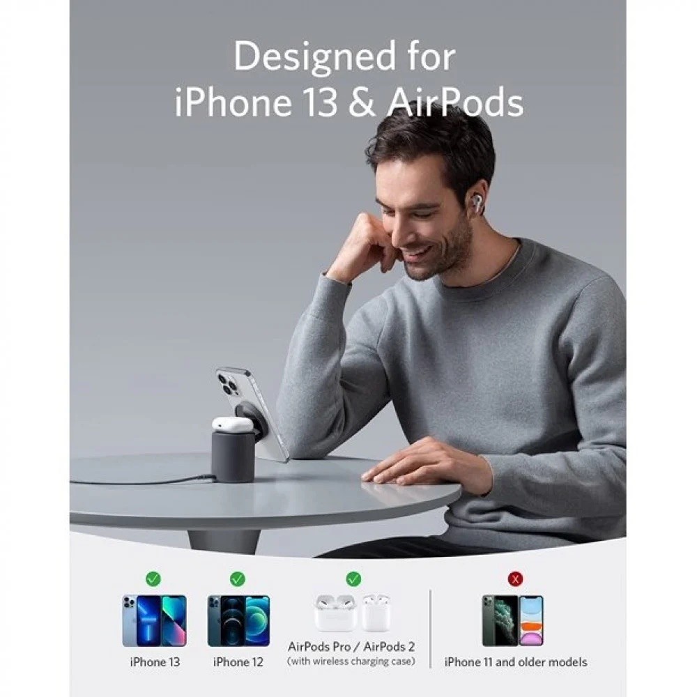 مصمم لشحن iPhone 13/12 وما فوق ، بالإضافة إلى AirPods وسماعات الأذن الأخرى المتوافقة مع علبة الشحن اللاسلكي بسرعات فائقة.